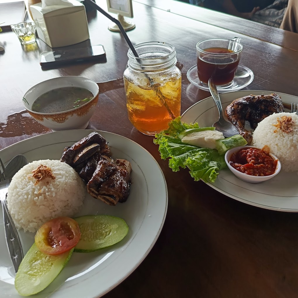 Penyajian restoran ini bersifat semi-prasmanan dengan variasi makanan yang sangat banyak, mulai dari sayur asem, lalapan, dan sambal yang bisa didapatkan secara gratis, aneka ikan, ayam, iga, paru goreng, tempe mendoan, bakwan, dan banyak lagi.