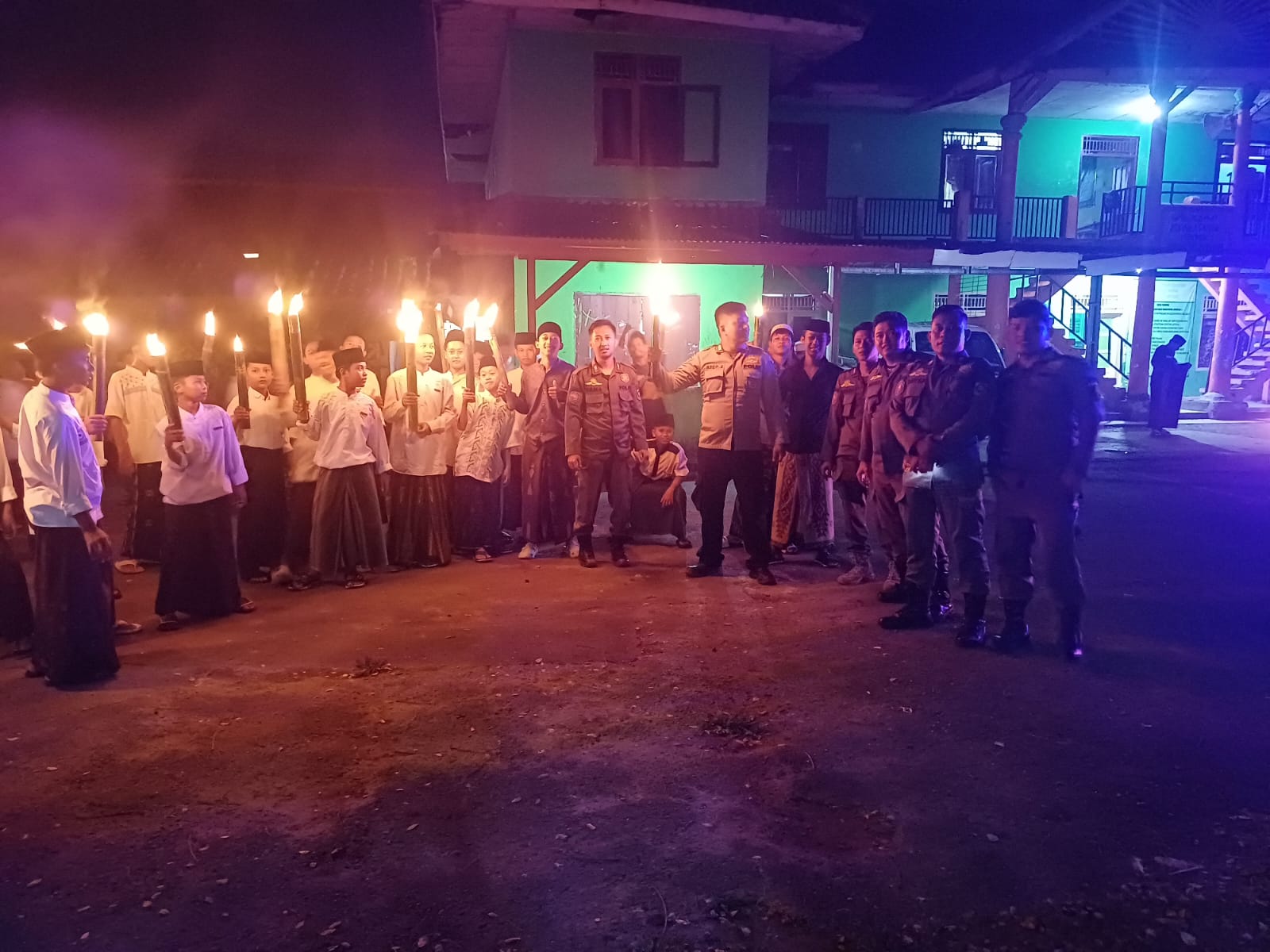 Pawai obor disertai takbir dan sholawat tak henti dikumandangkan para santri dan warga guna mensyukuri tibanya 1 Muharram 1447 H yang juga dirayakan oleh umat Islam seantero bumi.