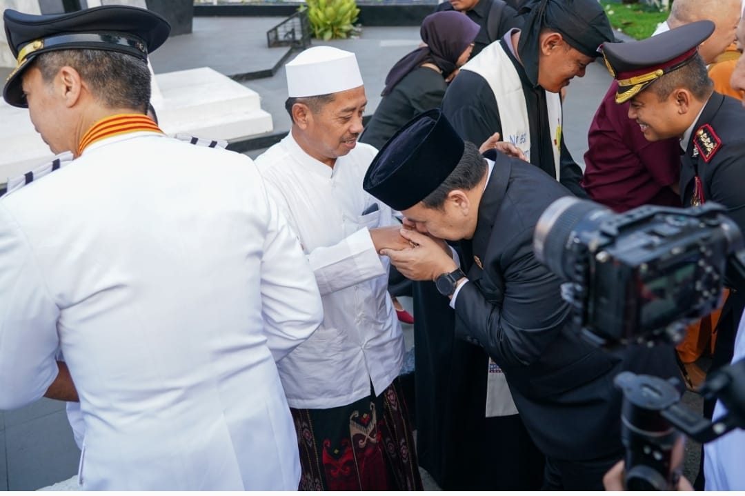 Sebelum memulai upacara bendera, Adityawarman bersama unsur Forkopimda yang dipimpin oleh Wali Kota Bogor, Dedie A. Rachim mengikuti doa bersama lintas agama di Tugu Kujang.