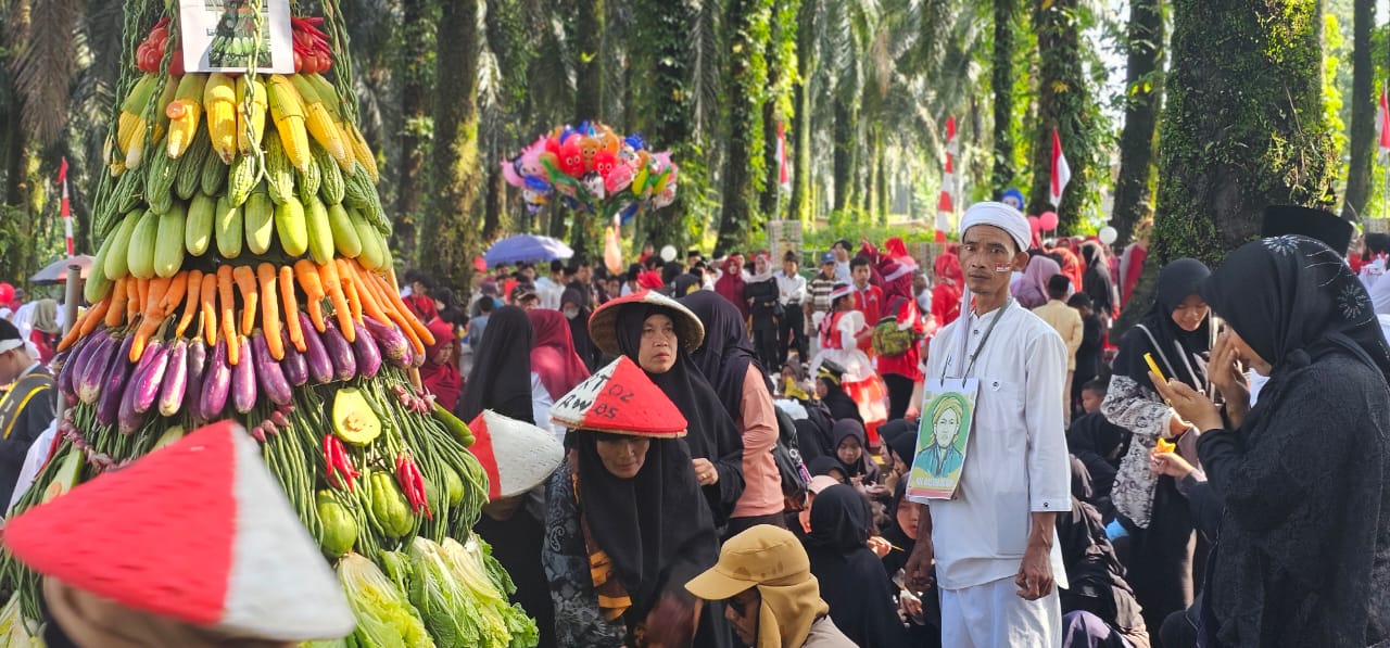 Warga Desa Bantarsari, Ranca Bungur Kabupaten Bogor tumpah ruah tampil mengenakan busana serta asesori tradisional dan hiasan dongdang memeriahkan HUT Kemerdekaan RI sekaligus milad. (Foto : IST/Wahdif)