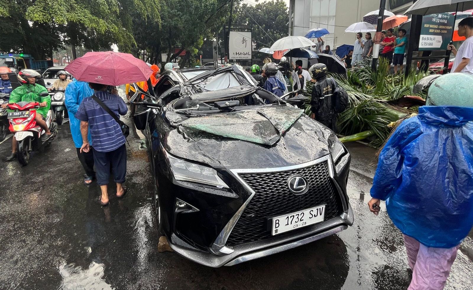 BREAKING NEWS Pengendara Mobil Lexus Tewas Tertimpa Pohon Tumbang di Pondok Indah