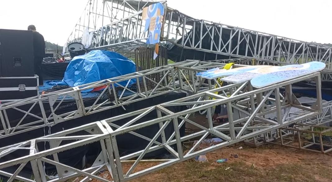 Hujan Lebat Disertai Angin Kencang di Gunung Sindur Bogor, Tenda dan Panggung Festival UMKM Ambruk
