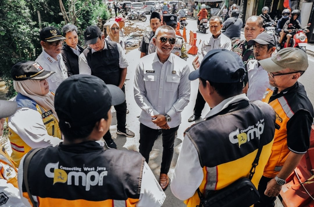“Tidak hanya penanganan titik yang longsor, tetapi juga lokasi yang berpotensi longsor akan dilakukan penanganan dan perbaikan,” kata Jenal Mutaqin saat meninjau lokasi longsor di Jalan Kebon Pedes, Rabu (1/4/2026).